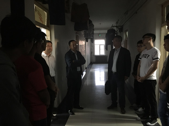 为了解公司本科新生、研究生新生在校的住宿条件和生活状况,8月26日傍晚,beats365党委书记孟繁二老师、beats365党委副书记兼beats365副经理杜天宝老师、beats365副经理郭东伟教授、beats365副经理秦贵和教授、带领beats365相关负责老师及员工干部来到大学城深入新生宿舍并亲切看望2018级新生。