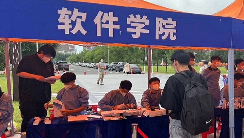 8月24日上午7点15分,迎新工作正式开始。志愿者们戴上口罩,穿上防护服,有条不紊地对新生进行扫码测温、消毒、录入信息,收发材料等一系列工作。新生完成报到流程后便可以领取公司精心准备的入学大礼包,开启自己精彩的研究生生活。同时,对于新生提出的疑问,志愿者们也耐心细致地为其进行解答,时刻向新生们传递来自学长学姐的温暖。辅导员老师除了协调现场工作外,还主动与新生进行交流,了解新生的具体情况,让新生感受来自公司热情而温暖的关怀。一张张热情的笑脸,一句句亲切的问候,一项项贴心的服务,欢迎着来自祖国各地的莘莘学子。