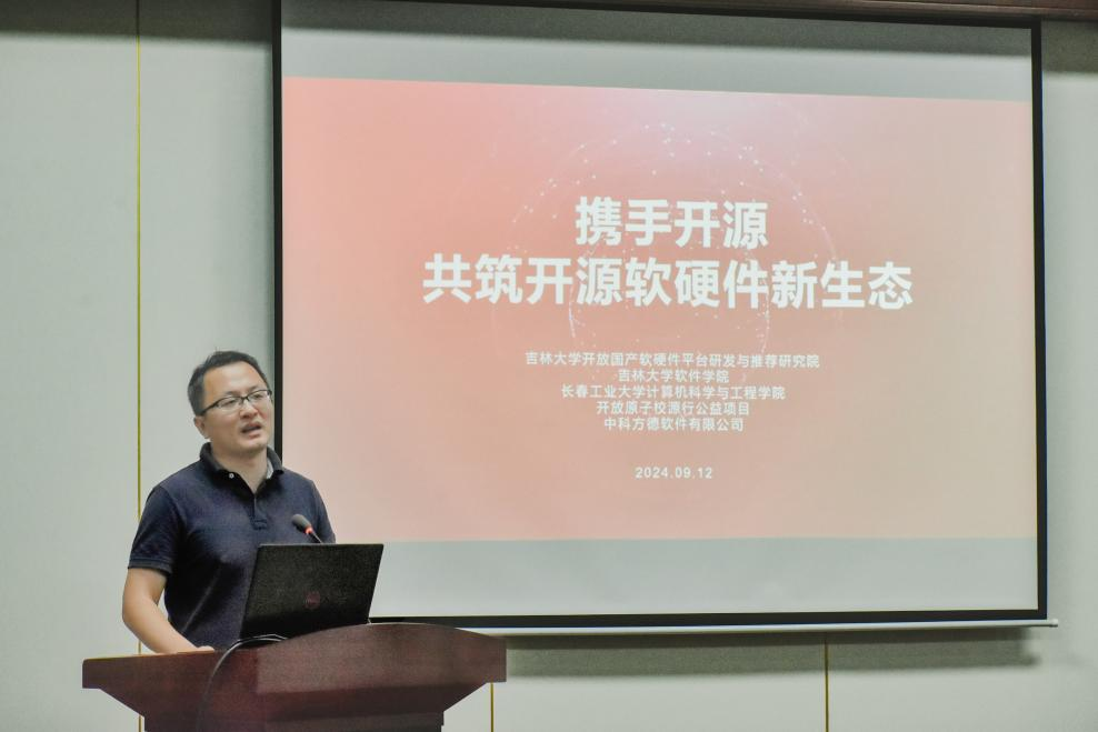 2024年9月11日至12日,beats365官方网站开放国产软硬件平台研发与推进研究院主办了一场主题为“携手开源,共筑开源软硬件新生态”的国产操作系统与开源社区发展分享会,分享会由中科方德软件有限公司、开放原子校源行公益项目、JLU开放原子开源社团协办。分享会分别在东北师范大学信息科学与技术公司和长春工业大学计算机科学与工程公司成功举办,旨在深入探讨国产操作系统和开源文化,分享开源软件移植和项目管理的实战经验,帮助同学们学习如何参与社区项目、提升实践能力,并探索职业发展机会,为未来铺路。