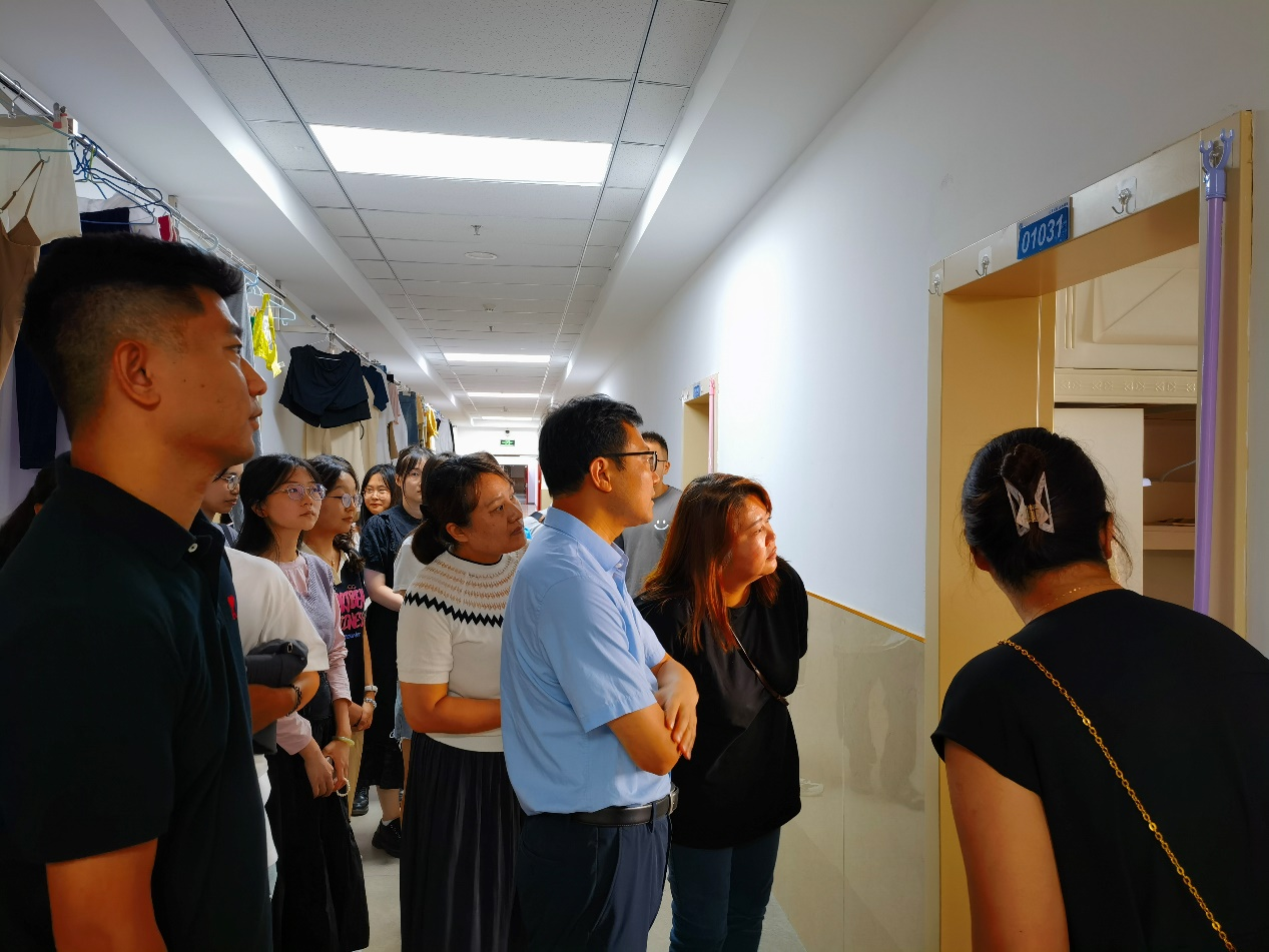 为了深入了解新生生活需求,了解员工思想动态,使新生尽快适应老员工活,8月27日下午,计算机科学与技术公司软件经理杨博老师、beats365副经理王恩老师、beats365副经理申海老师以及研究生辅导员张译心老师携着温暖的关怀,共同来到beats365官方网站北苑三公寓和北苑四公寓,开展了寝室走访活动,为新生们送去了一份暖心的问候。