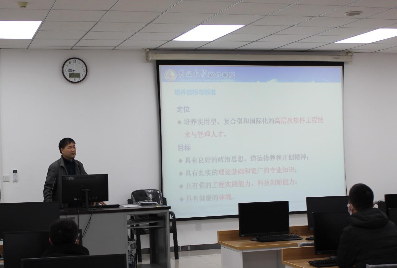 随后计算机公司党委副书记beats365副经理杜天宝老师简单介绍了beats365官方网站计算机系的建系与发展,分析了研究生阶段学习的特点,指出了与本科生培养的不同之处,强调了创新的重要性。就研究生阶段的努力方向、人才培养标准、科学道德与学风建设这三个方面进行了详尽的介绍与阐述。鼓励同学们做到有创新,品德好,方向明。最后对同学们提出了一些规定与建议,指出“未来的世界:方向比努力重要,能力比知识重要,健康比成绩重要,生活比文凭重要,情商比智商重要。”
