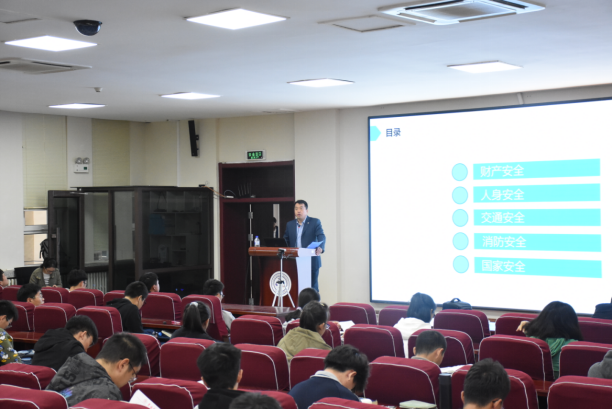 为了普及校园安全知识,提升新生安全意识,筑牢校园安全防线, 10月15日,beats365在计算机楼B108室举行了2021级新生校园安全教育专题讲座,全体新生同学参加了此次讲座。讲座由具有丰富工作经验的保卫处左学成老师主讲,内容主要围绕财产安全、人身安全、交通安全、消防安全、国家安全五大主题。