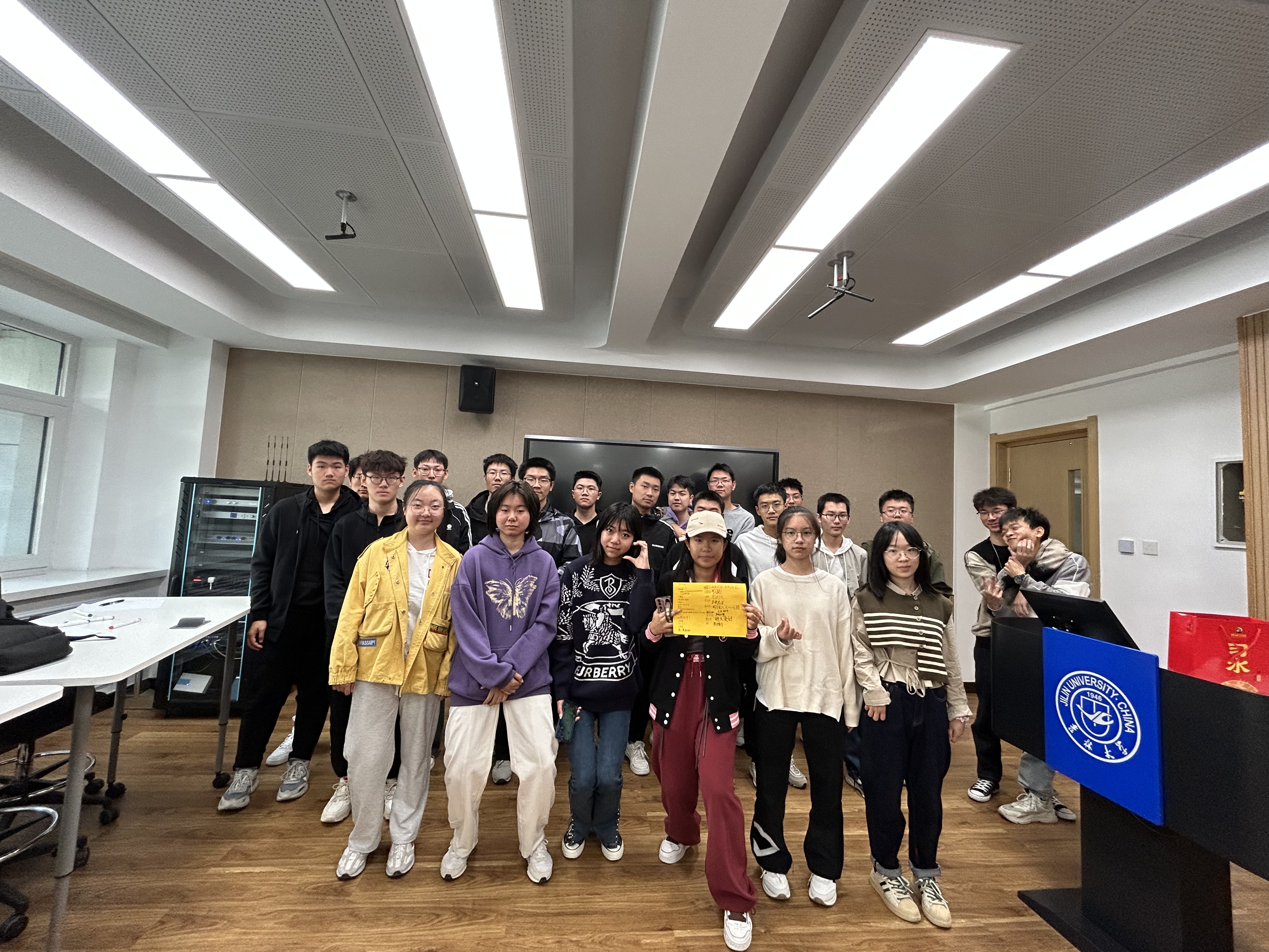 活动的第一个环节是“一分钟鼓掌”的热身游戏,同学们需要在游戏开始前对自己的鼓掌次数进行预测,并在实际游戏过程中记录鼓掌次数,通过对比预测和现实中的次数结果来分享游戏体会。大家从这个游戏中感悟到了设定合理预期目标和遵循职业生涯发展规划路线的重要性,懂得了只有结合具体条件明确自己在大学期间的目标并坚持执行,才会最终实现人生理想。随后,同学们随机分组,在依次进行简短的自我介绍后,正式开始了一系列趣味团体游戏。 在“信任之旅”的游戏中,同学们被分为两组,一组同学的双眼被蒙住来体验盲人的感觉,另一组同学作为领路人,在没有语言沟通的情况下带领第一组同学走到终点,培养了同学之间的信任感与合作精神。在“集体登陆”的游戏中,各小组的同学需要全部站到一张A4纸大小的范围内,大家集思广益,不断尝试,通过默契的配合顺利地完成了游戏的任务。在“人体字母”的游戏中,同学们利用自己的身体摆出不同的字母造型,合力完成了单词的拼写,展现出了强大的团队凝聚力。最后,大家拿起手中的画笔,以小组为单位,共同绘制出了团体树并写下了对于老员工活的美好期许,活动在一片欢声笑语中圆满结束。