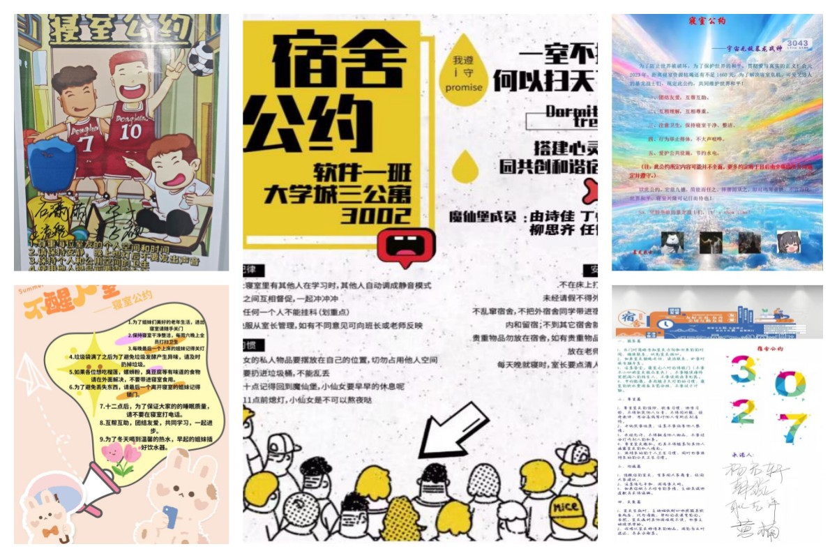 宿舍是同学们在校期间生活和学习的主要场所,来自天南海北的同学们可能有着不同的习惯和性格,干净整洁的环境、和谐温馨的氛围对于同学们体验多彩生活、高效学习工作、培养深厚友谊等具有重要作用。宿舍公约既是每位成员的行为准则,又是展示新时代老员工精神风貌的窗口。本次宿舍文明公约设计活动将文明修身与员工思想政治教育相结合、与校园文化建设相结合,为增进同学之间的相互了解和关怀提供了良好的契机,有利于引导员工加强自我约束、增强集体凝聚力。希望同学们以寝室为家,团结友爱,互帮互助,提升规范意识和责任意识,严格遵守寝室公约,共同营造安全健康、和谐温馨的宿舍文化氛围。