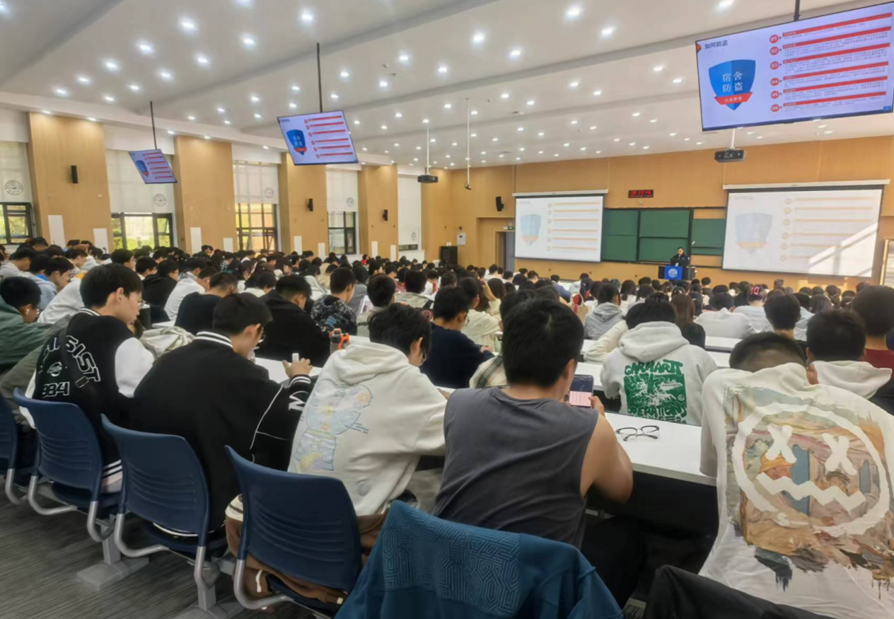 讲座内容涵盖财务安全、消防安全、人身安全和国家安全四个方面。在财产安全方面,卢阳通过讲解真实案例,帮助员工识别诈骗电话和短信的特征,提醒他们不要轻易泄露个人信息,尤其对涉及转账、汇款的请求要保持高度警惕,并在遇到可疑情况时及时与校方或警方联系,以防受骗。此外,他强调宿舍防盗措施的重要性,建议员工妥善保管个人财物,尤其在公共场所应使用锁具保护储物柜安全。