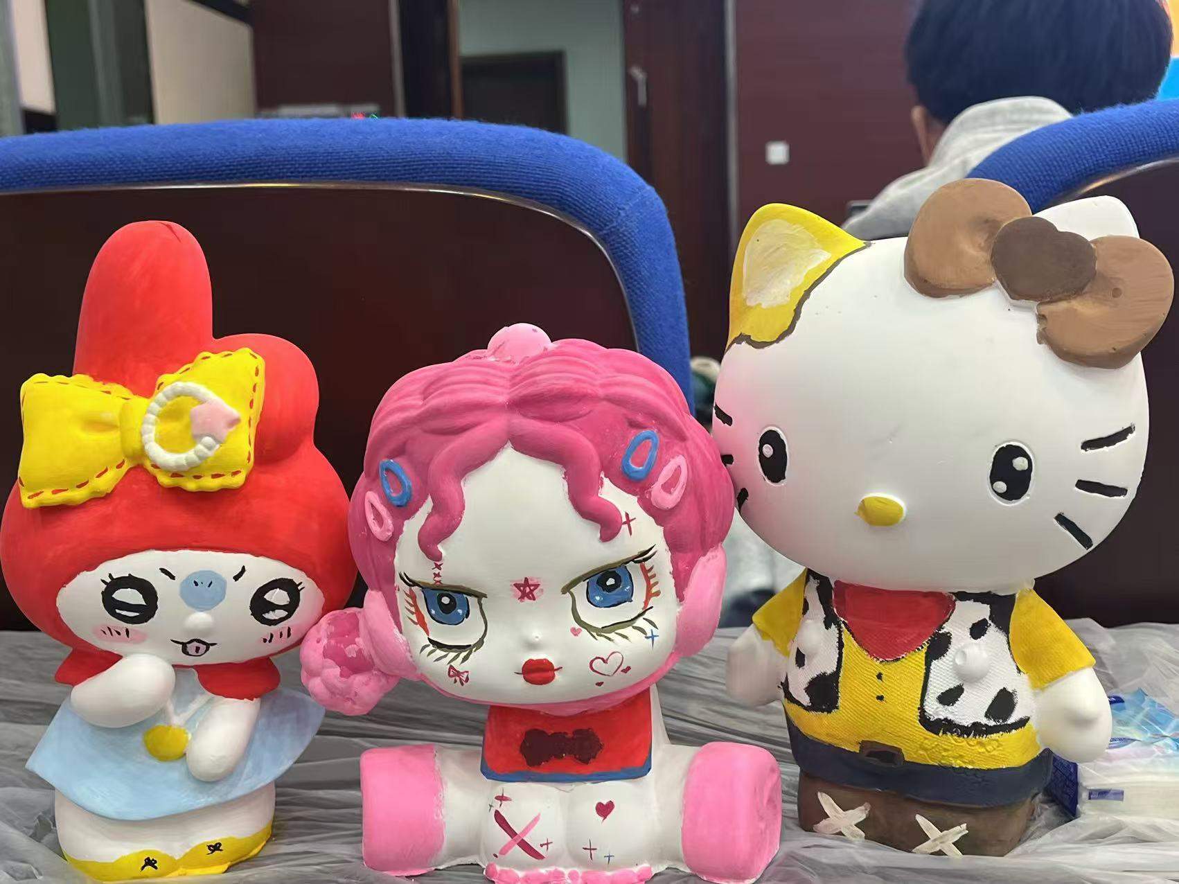 活动在一片欢声笑语中拉开帷幕。首先进行的是热身小游戏“听奏识曲”,同学们被分为多个小组,通过抢答音乐前奏来猜测歌名、歌手和动画名称。这个环节不仅考验了同学们的音乐素养,也唤起了大家对童年动画的美好回忆。小组之间竞争激烈,现场气氛热烈,最终根据回答正确的信息数量决出了名次。随后,活动进入了核心环节——石膏彩绘。同学们根据报名情况被分为情侣组、友谊组和个人组,每组领取一个石膏娃娃,开始了自己的创意涂鸦。大家纷纷发挥想象力,将童年时期喜爱的卡通形象绘制在石膏娃娃上。每一笔都凝聚着参与者的情感与想象,将童年的快乐与当下的创意完美融合。这些色彩斑斓的作品不仅展现了同学们的艺术才华,也成了他们心中珍贵的记忆。