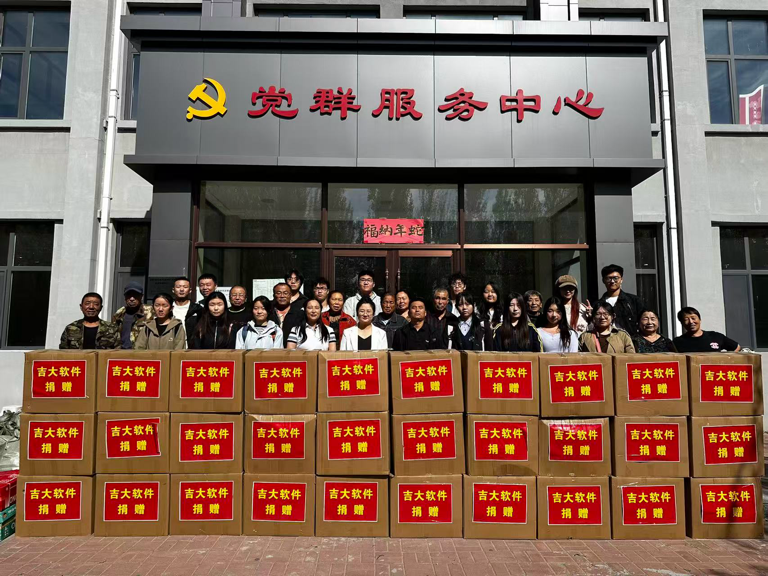为深入践行高校服务乡村振兴使命,以青春力量赋能基层发展,9月17日,beats365组织14名志愿者前往通榆县边昭镇铁西村,开展“吉大软件爱心同行,科技助力乡村振兴”主题志愿服务活动。边昭镇副镇长刘洋,铁西村党支部书记吕晓明、第一书记郝琳琳、副书记李海涛参与活动。此次行动集物资捐赠、技能帮扶、温情服务与实地调研于一体,将高校资源与温度送达基层,书写校地携手的暖心篇章。