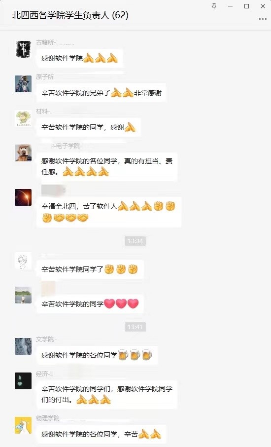 志愿者总负责人潘得新同学说:“疫情可以阻挡我们出行的脚步,但是不能阻止爱和温暖的传递。” “战胜疫情需要大家的努力,没有一个人可以独善其身偏安一隅。”党员高磊同学说道。正因如此,在这场艰难的校园抗疫战役中,软件学子凭借着一丝不苟、全心全意为同学们服务的态度,赢得了所有人的尊重和赞誉。