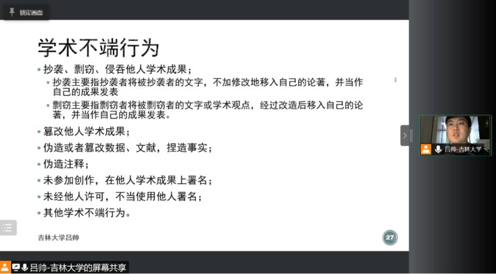 4月15日晚上19:00-20:30第三场讲座通过腾讯会议直播进行,主题是大创项目申报注意事项:项目评审与论文规范。计算机科学与技术公司副教授吕帅首先向同学们介绍了大创项目的申报流程,并对立项前后的组队及执行等环节给出了几点建议。吕帅老师列举入选国家级项目清单向大家讲述了大创选题的方法和重要性,然后以创新训练项目为例对申请书中国内外研究现状分析与评价、研究内容、特色及创新点、申请理由、实施方案、进度安排、所需资源、经费预算和预期成果等九大要素的主旨、注意细节及避免问题进行了细致阐述。接着,吕帅老师对比期刊论文和会议论文详述了两者在写作、投稿及评审流程中的注意事项,同时详解了学术不端行为的认定标准。讲座最后,就论文一作和通讯作者人选等问题吕帅老师与同学们进行了线上交流。